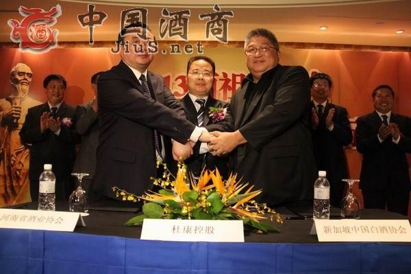 在我國外交部官員、河南省外事辦官員以及新加坡大使館參贊、杜康控股高層等人的共同見證下,洛陽杜康控股銷售公司總經理苗國軍、河南省酒業協會會長熊玉亮、新加坡我國白酒協會會長云偉龍簽署三方戰略合作框架協議,未來將致力于在新加坡及其他亞洲地區,深度挖掘和推廣杜康酒文化、我國酒文化以及中原根源文化。