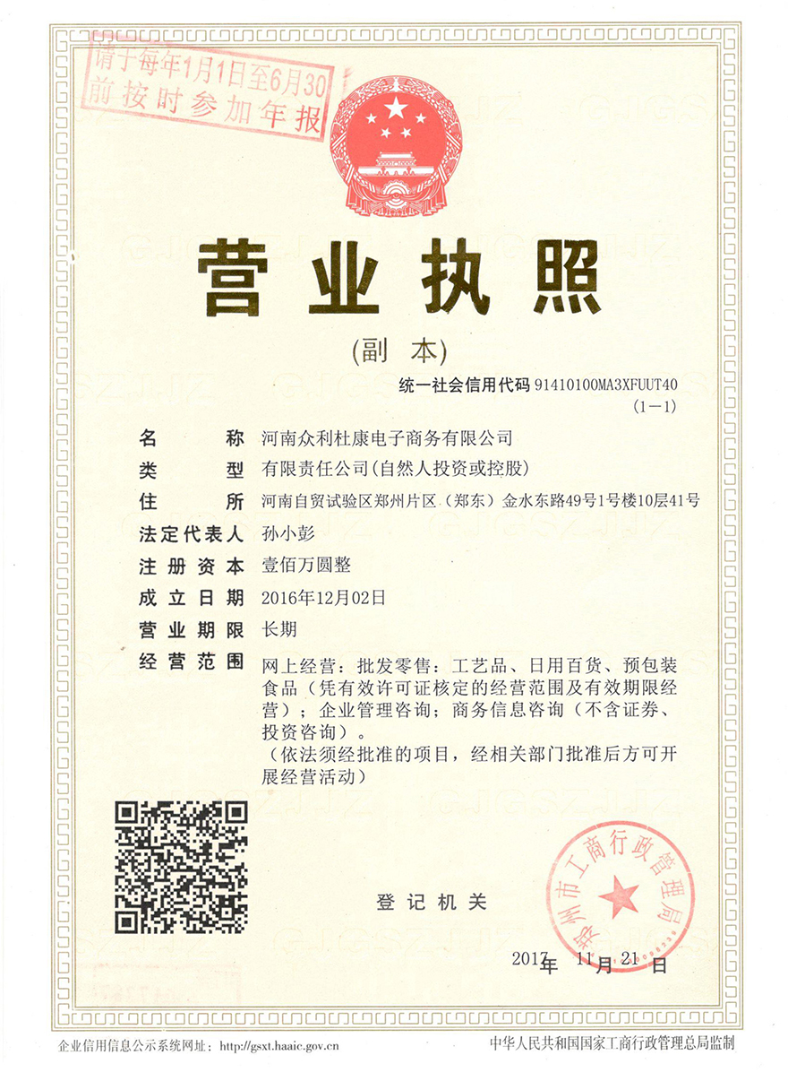| 公司名稱: | 眾利杜康電子商務有限公司 | ||